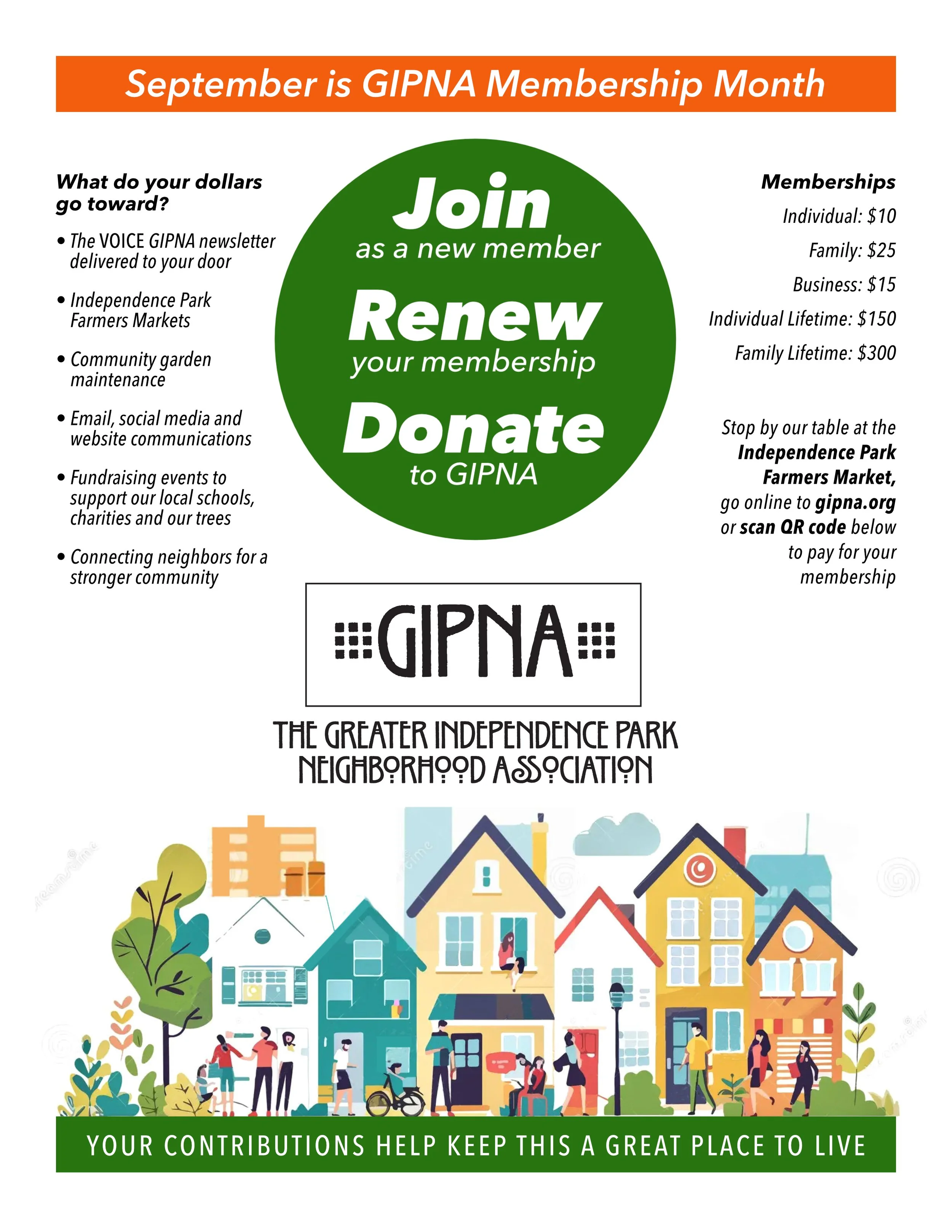 The Greater Independence Park Neighborhood Association (GIPNA) is a group of civic-minded individuals who believe a unified community that faces modern challenges can affect real, lasting change.